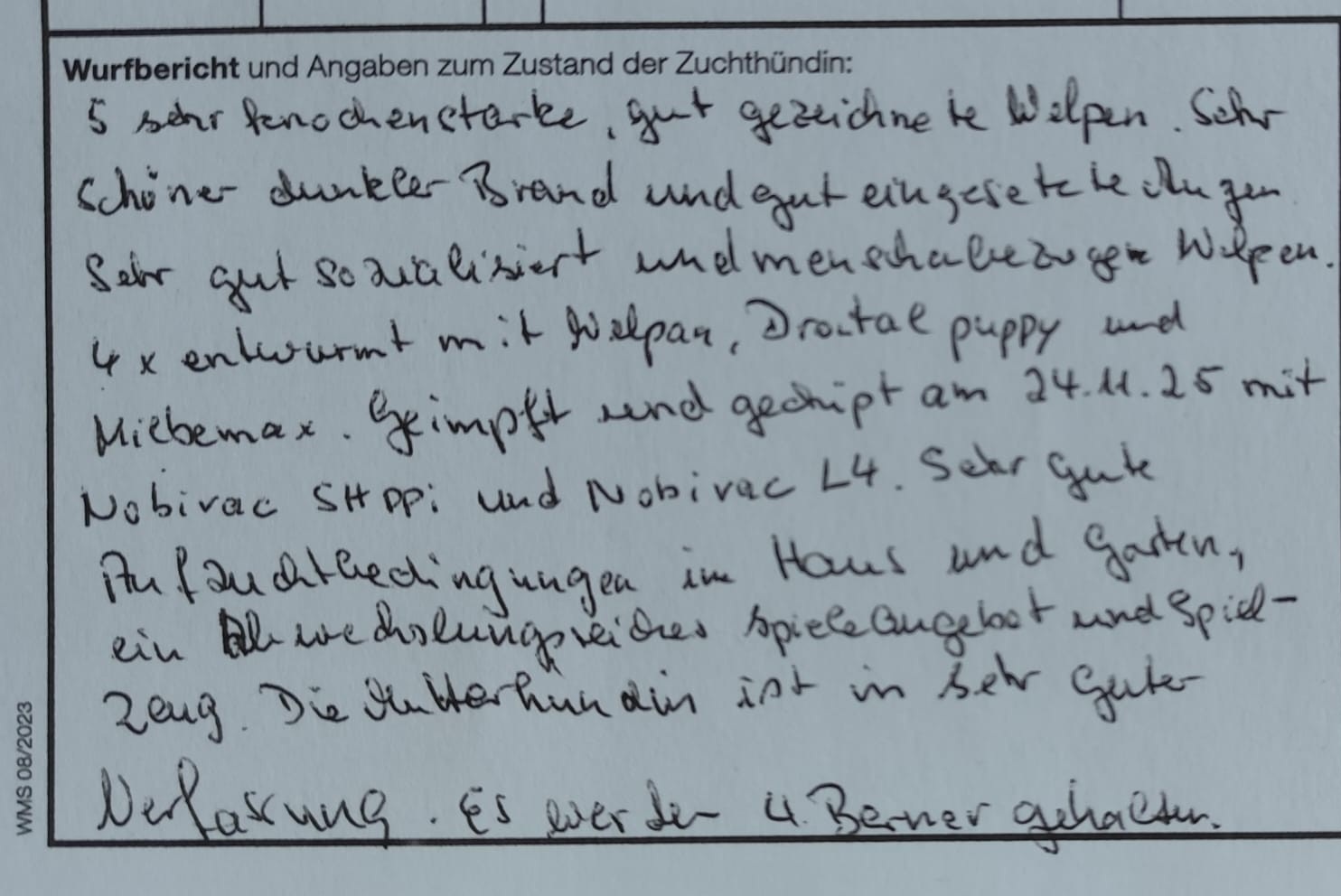 2 (6) Rüden und 3 (4) Hündinnen. Leider haben es 5 der 10 Welpen nicht ins Leben geschafft.